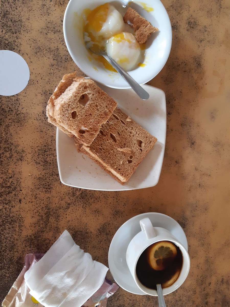 One of the restaurant's standout dishes is the beloved Nasi Lemak, a staple in Malaysian cuisine. It’s served with a fragrant coconut rice base, paired with spicy sambal, crispy anchovies, and a hard-boiled egg-just the perfect combination for a flavorful meal. Whether you’re a local or a visitor, you can't go wrong with this dish. Another popular choice is the Set a 2halfboil Coffee Tea Kaya Toast x2. It’s a comforting set that includes soft, half-boiled eggs, paired with traditional kaya toast-crispy, buttery toast spread with a sweet coconut and egg jam. The set also comes with a choice of coffee or tea, making it a great breakfast or afternoon snack.